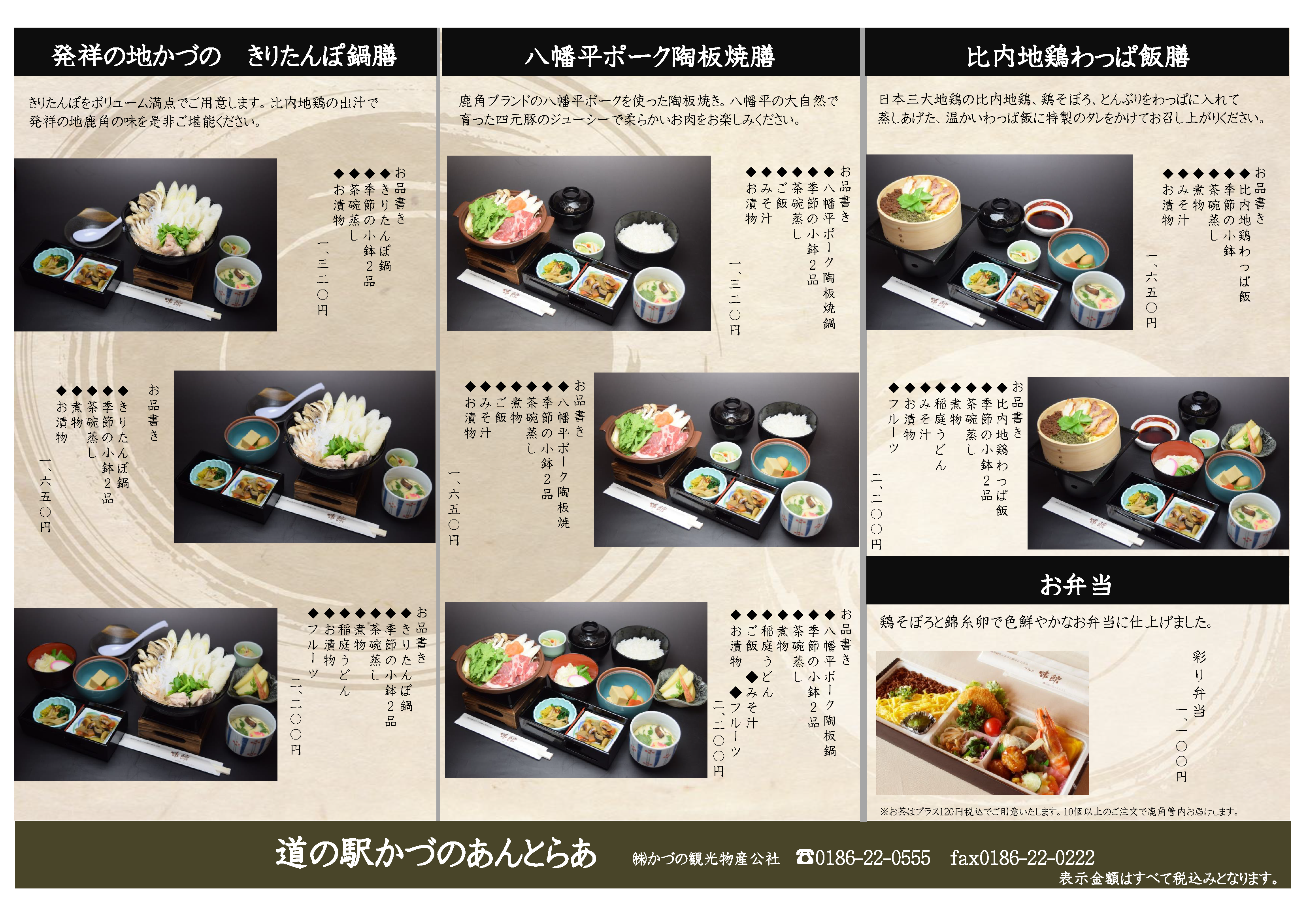 あんとらあの団体専用レストランは、地元の素材を大切にしたメニューを取り揃えています。きりたんぽ鍋膳、八幡平ポーク陶板焼膳、比内地鶏わっぱ飯膳など、鹿角の美味しい味を堪能出来ます。団体旅行のほか、各種ご会食も承りますのでぜひご利用ください。